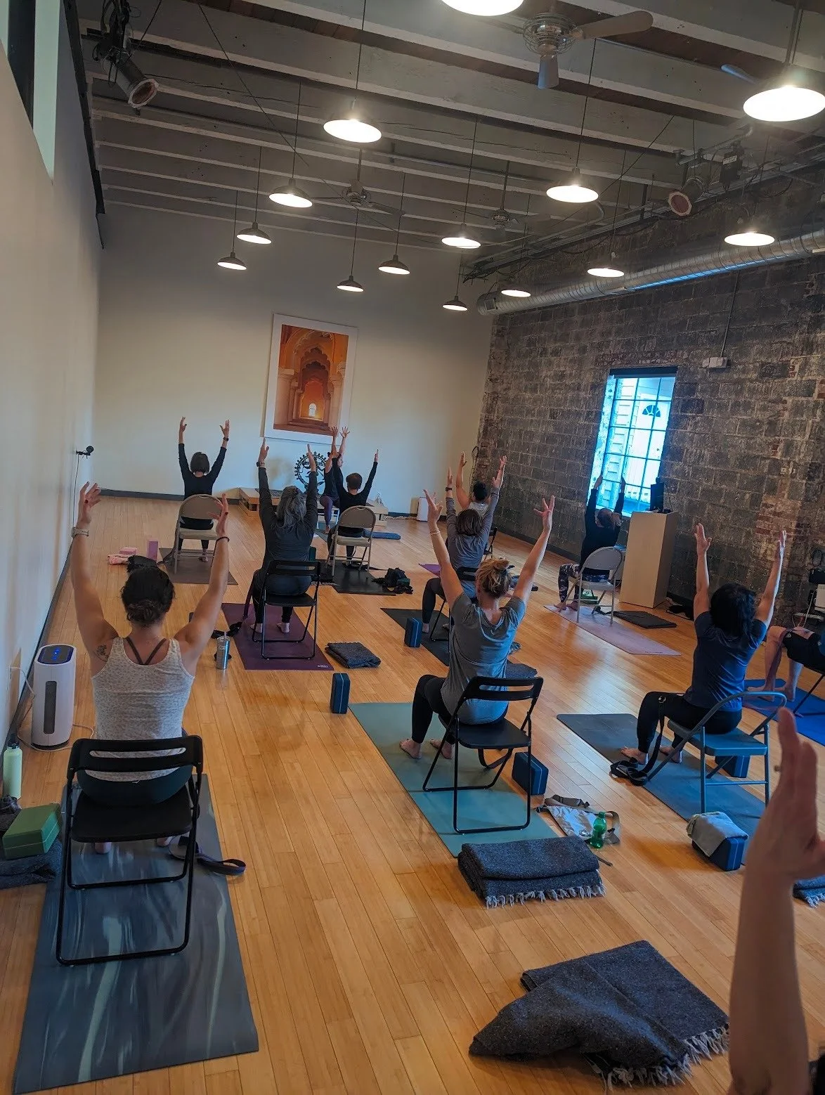 Chair Yoga offers students a gentle way to move through yoga poses with support. We will practice a series of poses on chairs that promote movement without over-effort. This class is ideal for anyone with injury, arthritis, limited range of movement, or for those just looking to move slower. Chairs are provided at the studio.